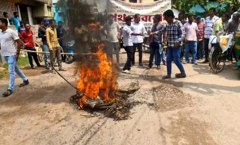 বর্ষা এখনো আসেনি। কিন্তু, তার আগেই স্বল্প বৃষ্টিতেই বেহাল দশা রাস্তার। দীর্ঘদিন রাস্তা সারাইয়ের দাবি জানালেও হয়নি সুরাহা। অবশেষে রাস্তায় টায়ার জ্বালিয়ে বিক্ষোভ স্থানীয়দের। উত্তেজনার সৃষ্টি উত্তর দমদম পৌরসভার ১৬ নম্বর ওয়ার্ডের কাদিয়াটি এলাকায়। স্থানীয় বাসিন্দাদের দাবি, রাস্তার যা অবস্থা তাতে চলাচল ওষ্ঠাগত। যে কোনও সময় হয়ে যেতে পারে দুর্ঘটনা। প্রায় দু’বছরেরও বেশি সময় ধরে এই বেহাল দশা। কিন্তু বারবার প্রশাসনকে জানিয়ে হয়নি কোনও লাভ। ক্ষোভে ফুঁসছে স্থানীয়রা।