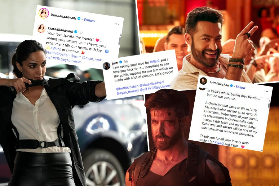 মুক্তির মাত্র ৪৮ ঘণ্টার মধ্যেই ১০০ কোটির মাইলস্টোন ছুঁয়ে ফেলেছে ‘ওয়ার ২’। এটাই প্রমাণ করছে ছবির প্রতি দর্শকের অগাধ আগ্রহ। সমালোচকেরা বলছেন, ছবির ভিজ্যুয়াল গ্র্যান্ডার, অ্যাকশনের ভিন্ন মাত্রা আর দুই তারকার ক্যারিশমাই এই অসাধারণ সাফল্যের মূল চাবিকাঠি।সোশ্যাল মিডিয়ায় চোখ রাখলেই স্পষ্ট বোঝা যায় ভক্তদের কাছে ছবিটি এখন আর কেবল সিনেমা নয়, বরং এক আবেগ। প্রেক্ষাগৃহের ভেতরে করতালি, বাঁশি, উল্লাসে ভরে যাচ্ছে প্রতিটি দৃশ্য। সিনেমাহলের বাইরে অনেকে আতশবাজি ফাটিয়ে, পতাকা উড়িয়ে উদযাপন করছেন ছবির সাফল্য।এই বিরাট সাফল্যের পর কৃতজ্ঞতা জানাতে ভোলেননি ছবির তারকারা। হৃতিক রোশন, জুনিয়র এনটিআর এবং কিয়ারা আডবানি সোশ্যাল মিডিয়ায় ভক্তদের উদ্দেশে ধন্যবাদ জানিয়েছেন। যদিও তাঁদের বক্তব্য ভিন্ন ভিন্ন, তবে একটাই বিষয় উঠে এসেছে—এই ছবির সাফল্য আসলে দর্শকদের ভালোবাসার জয়।