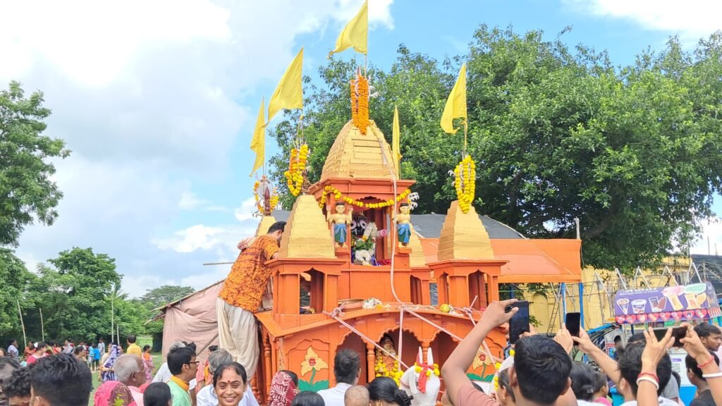 মুর্শিদাবাদের জিয়াগঞ্জে শুক্রবার পড়ল রথের দড়িতে টান। আর সেই টান যেন শুধু দেবতার রথ নয়, বরং টান এক প্রাচীন সংস্কৃতি, ঐতিহ্য আর হাজারো মানুষের আবেগের। প্রায় ৩৫০ থেকে ৪০০ বছরের পুরনো ঐতিহ্যবাহী সাধকবাগ বড় আখড়ার রথযাত্রা এদিন শুরু হল জাঁকজমকপূর্ণ আয়োজনে।